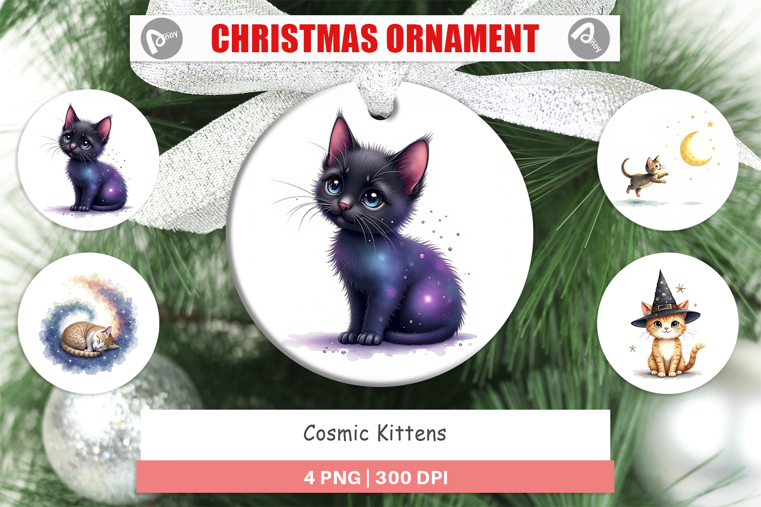Sublimation Designs Cat Lover Gift Diy Gift Idea Ornament Design Png Round Ornament Sublimation Printable Holiday Ornament Celestial Pet Gift Cosmic Kittens Ornament Space Cat Decor Galaxy Cat Ornament