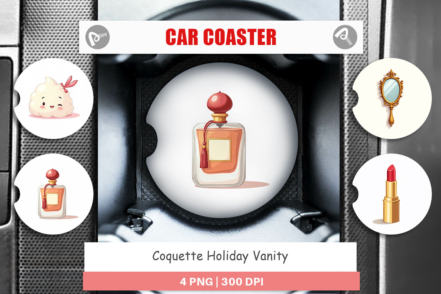 Sublimation Designs Car Coaster Png Car Coaster Sublimation Makeup Lover Gift Round Sublimation Template Coquette Aesthetic Cup Holder Coaster Png Coquette Christmas Coaster Girly Car Accessory Holiday Vanity Car Decor