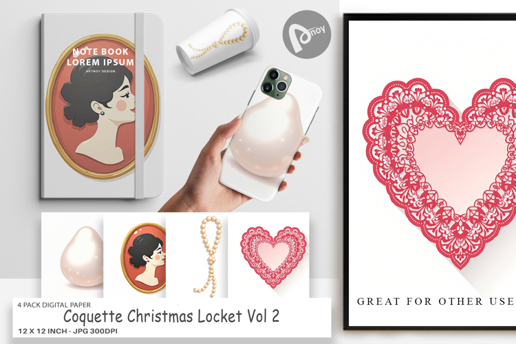 Similar Design Products to Christmas Coquette Locket Digital Paper