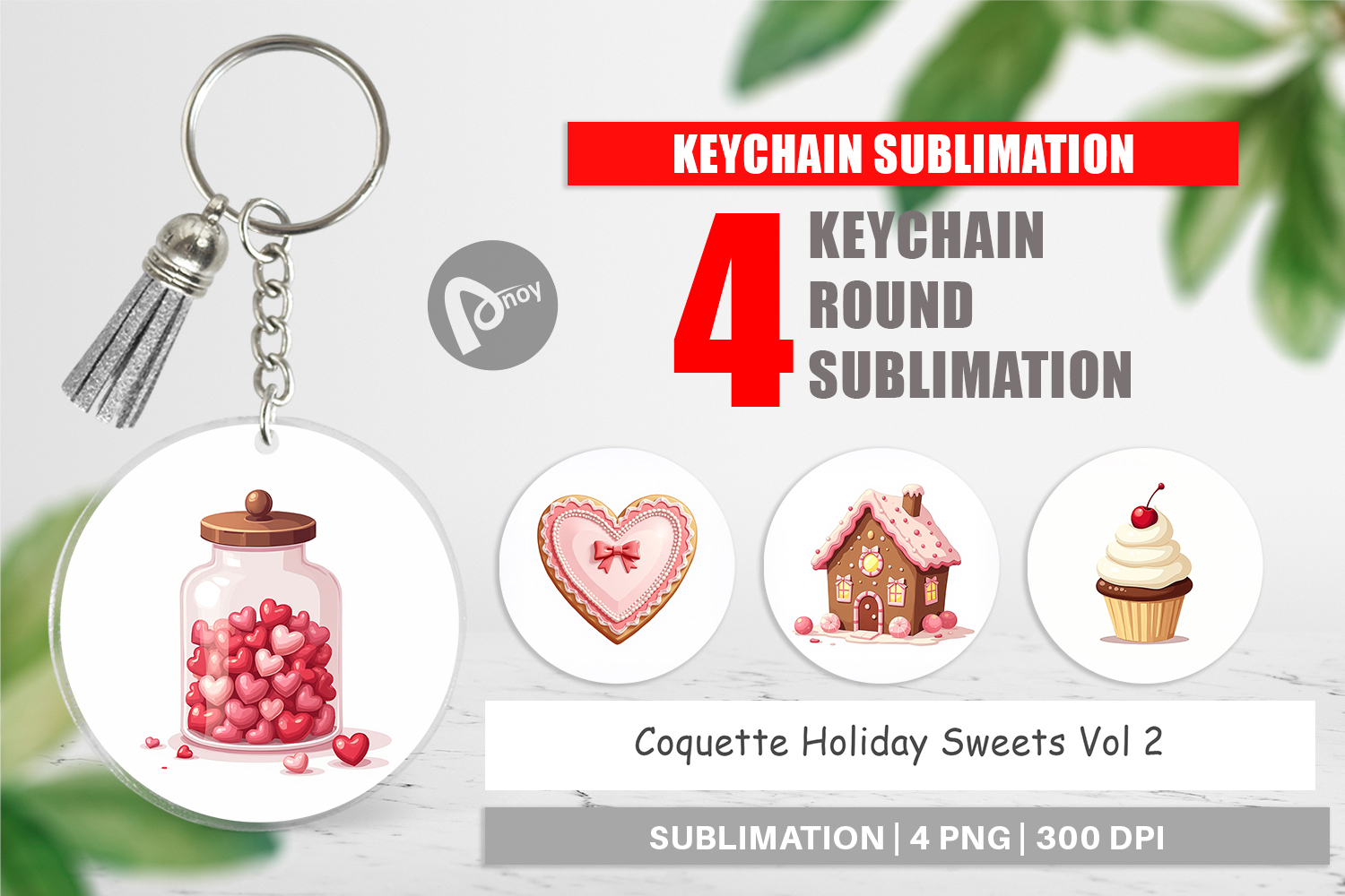 Sublimation Design Keychain Sublimation Round Keychain Png Coquette Aesthetic Bag Tag Design Printable Gift Png Dessert Theme Gift Holiday Sweets Background Girly Christmas Gift Coquette Christmas Keychain