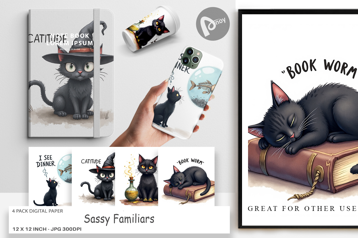 Printable Scrapbook Paper Digital Paper Bundle Gothic Background Black Cat Paper Halloween Junk Journal Digital Craft Supplies Sublimation Paper Background Spooky Season Scrapbook Sassy Familiars Paper Witch Cat Background