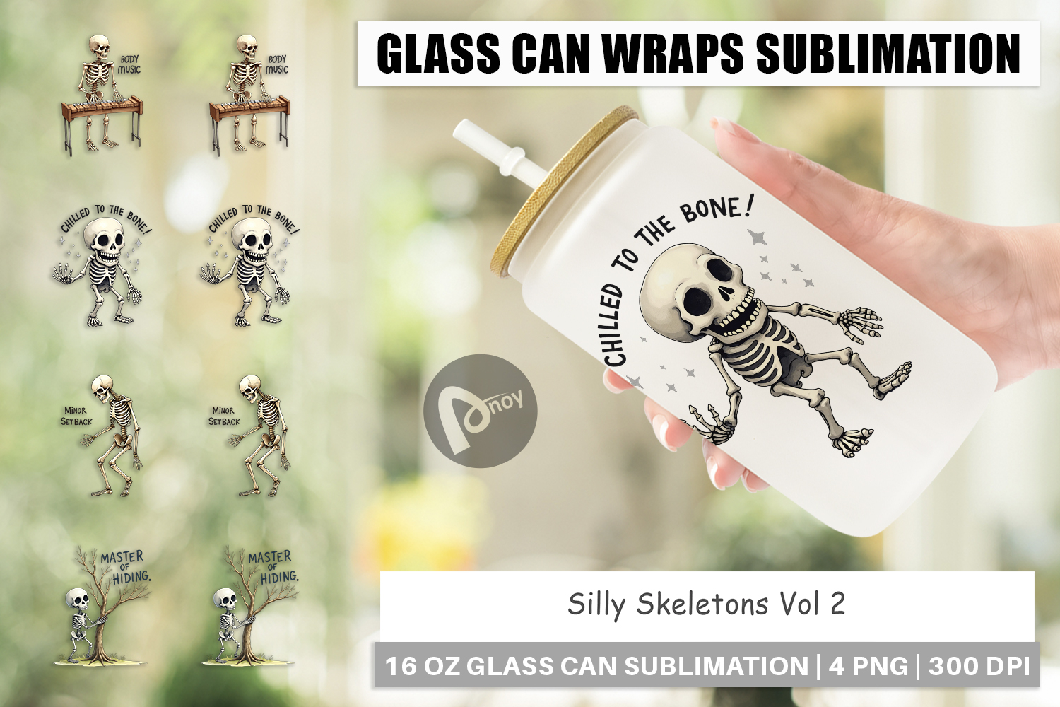 Sublimation Designs Full Wrap Design Halloween Party Cup Libbey Glass Sublimation Glass Can Wrap Png Printable Drinkware Spooky Season Drinkware Silly Skeletons Glass Can Cute Skeleton Iced Coffee Cup Dancing Skeleton Gift