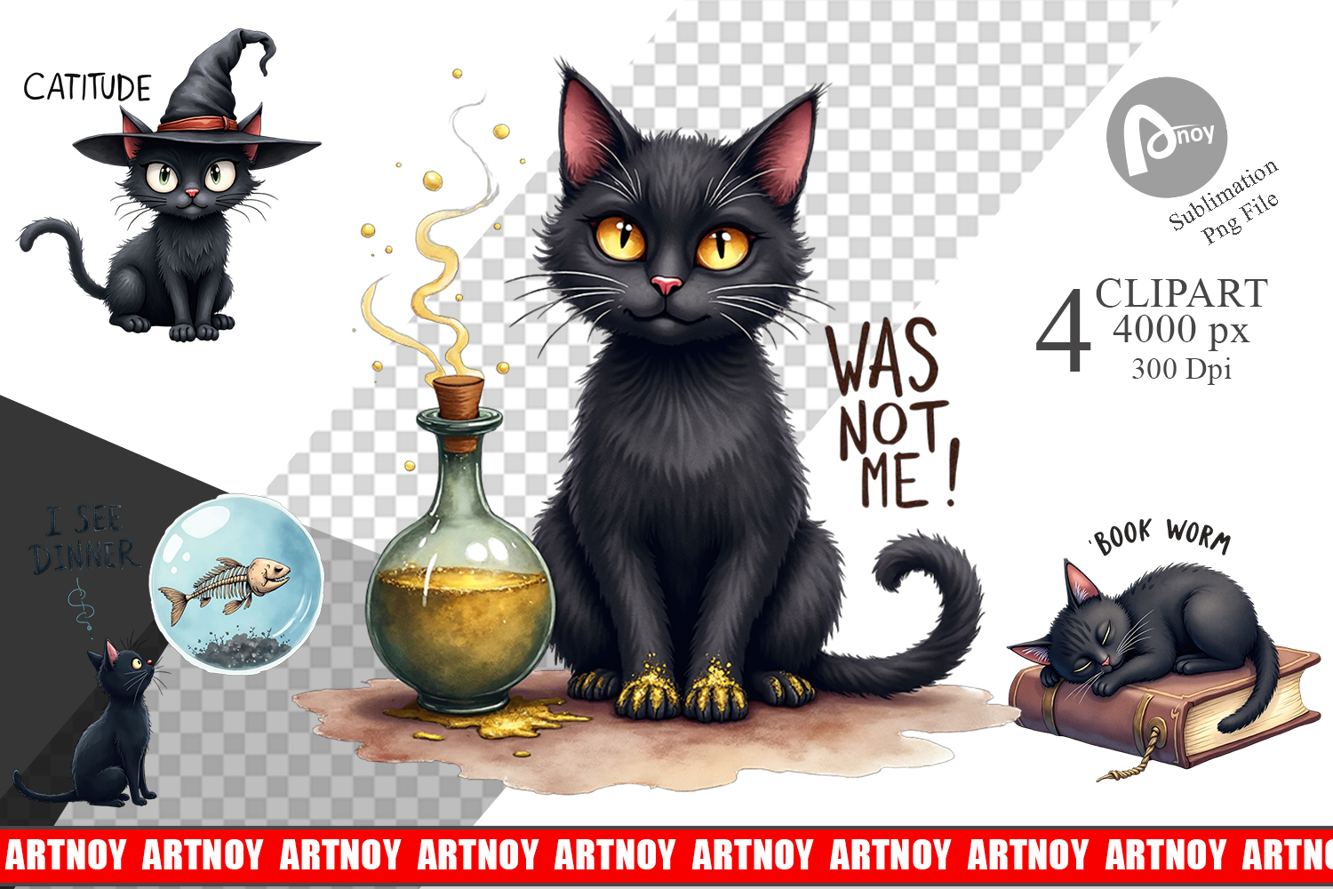Halloween Clipart Scrapbook Elements Digital Clipart Black Cat Clipart Printable Stickers Sublimation Designs Witch Cat Png Clipart Bundle Png Spooky Season Graphic Sassy Familiars Clipart