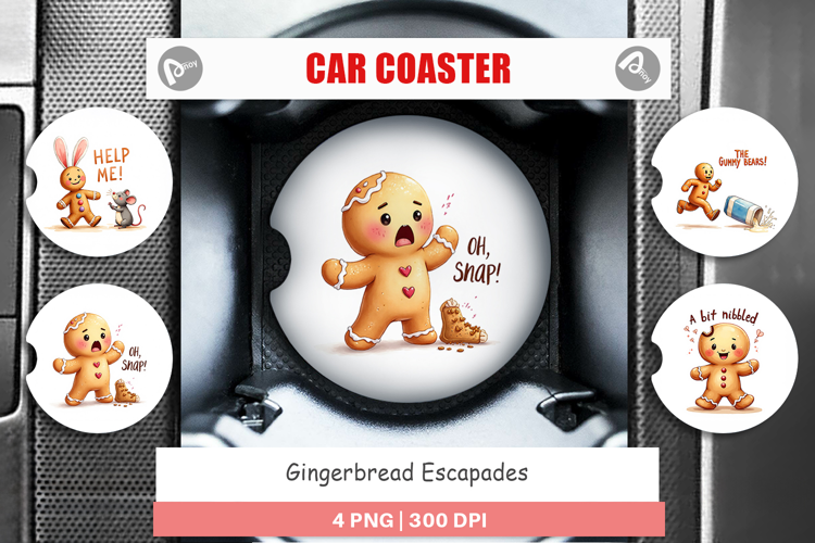 Christmas Gift Sublimation Designs Car Coaster Png Car Coaster Sublimation Round Sublimation Template Cup Holder Coaster Png Holiday Car Accessory Winter Car Decor Gingerbread Escapades Coaster Cute Cookie Car Decor