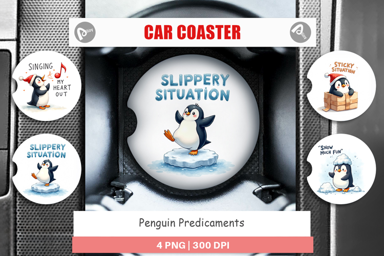 Christmas Gift Sublimation Designs Car Coaster Png Car Coaster Sublimation Round Sublimation Template Cup Holder Coaster Png Holiday Car Accessory Winter Car Decor Penguin Predicaments Coaster Cute Penguin Car Decor