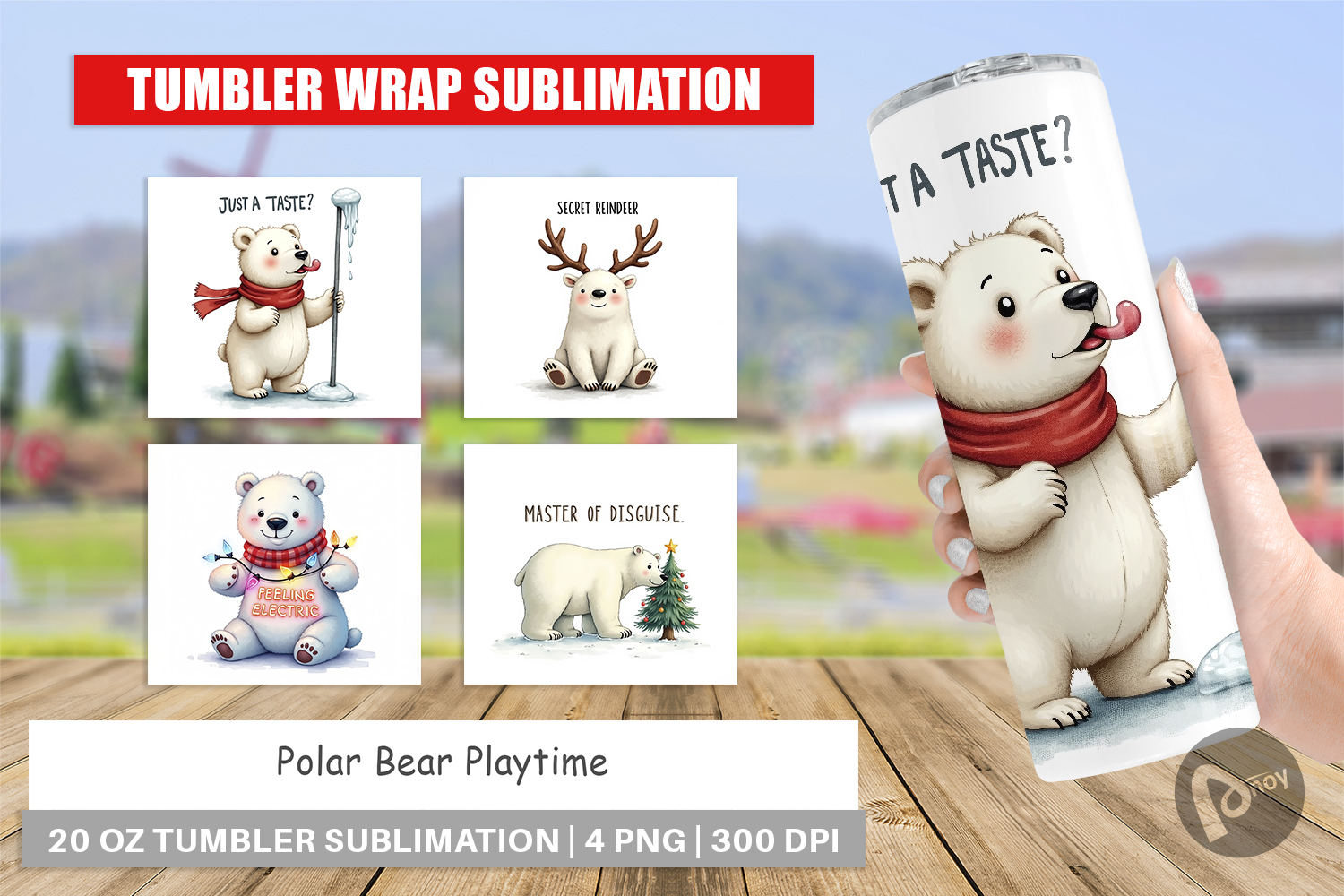Sublimation Designs Christmas Tumbler Skinny Tumbler Design Tumbler Sublimation Design Winter Tumbler Tumbler Wrap Png Full Tumbler Wrap Png Holiday Tumbler Gift Polar Bear Playtime Tumbler Cute Bear Drinkware