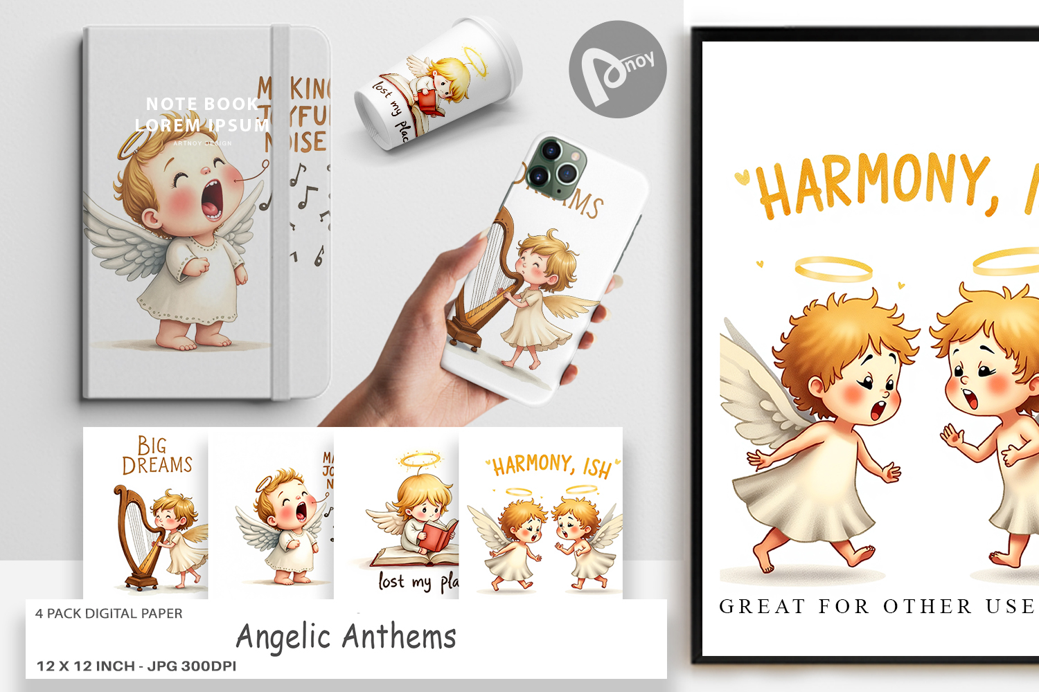 Printable Scrapbook Paper Digital Paper Bundle Winter Background Christmas Scrapbook Page Holiday Junk Journal Digital Craft Supplies Christmas Angel Background Sublimation Paper Background Angelic Anthems Paper Heavenly Decor
