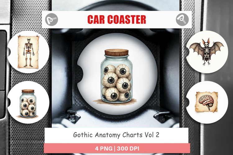 Sublimation Designs Car Coaster Png Car Coaster Sublimation Vintage Halloween Decor Round Sublimation Template Dark Academia Gift Cup Holder Coaster Png Gothic Car Accessory Gothic Anatomy Car Coaster Medical Illustration Decor