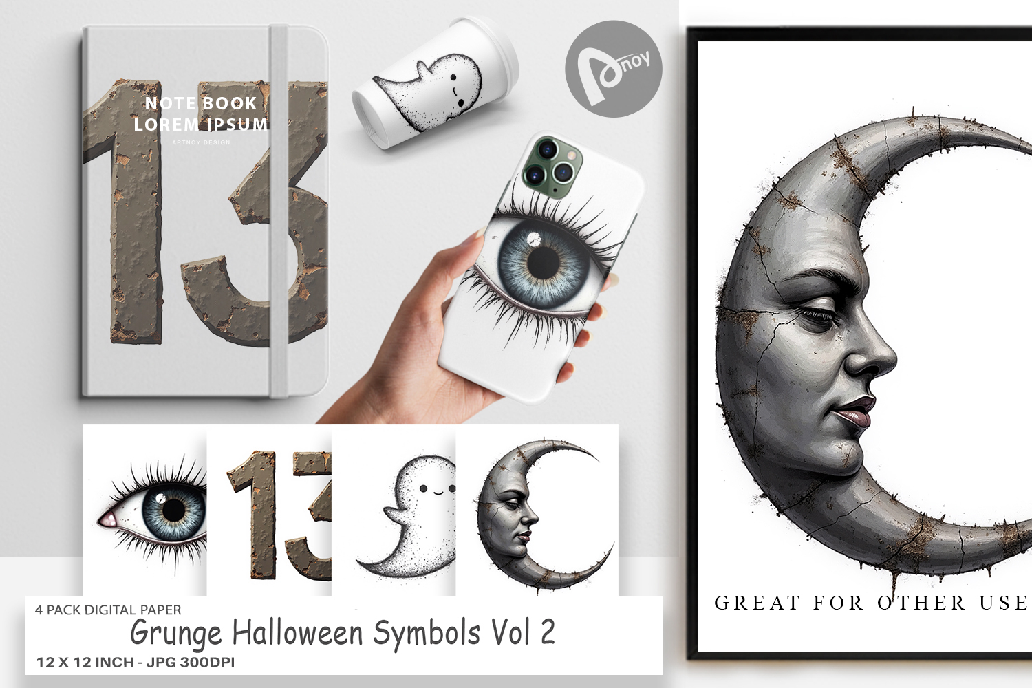 Printable Scrapbook Paper Digital Paper Bundle Distressed Background Digital Craft Supplies Sublimation Paper Background Vintage Halloween Journal Witchy Ephemera Gothic Craft Paper Grunge Symbols Paper Distressed Icon Background