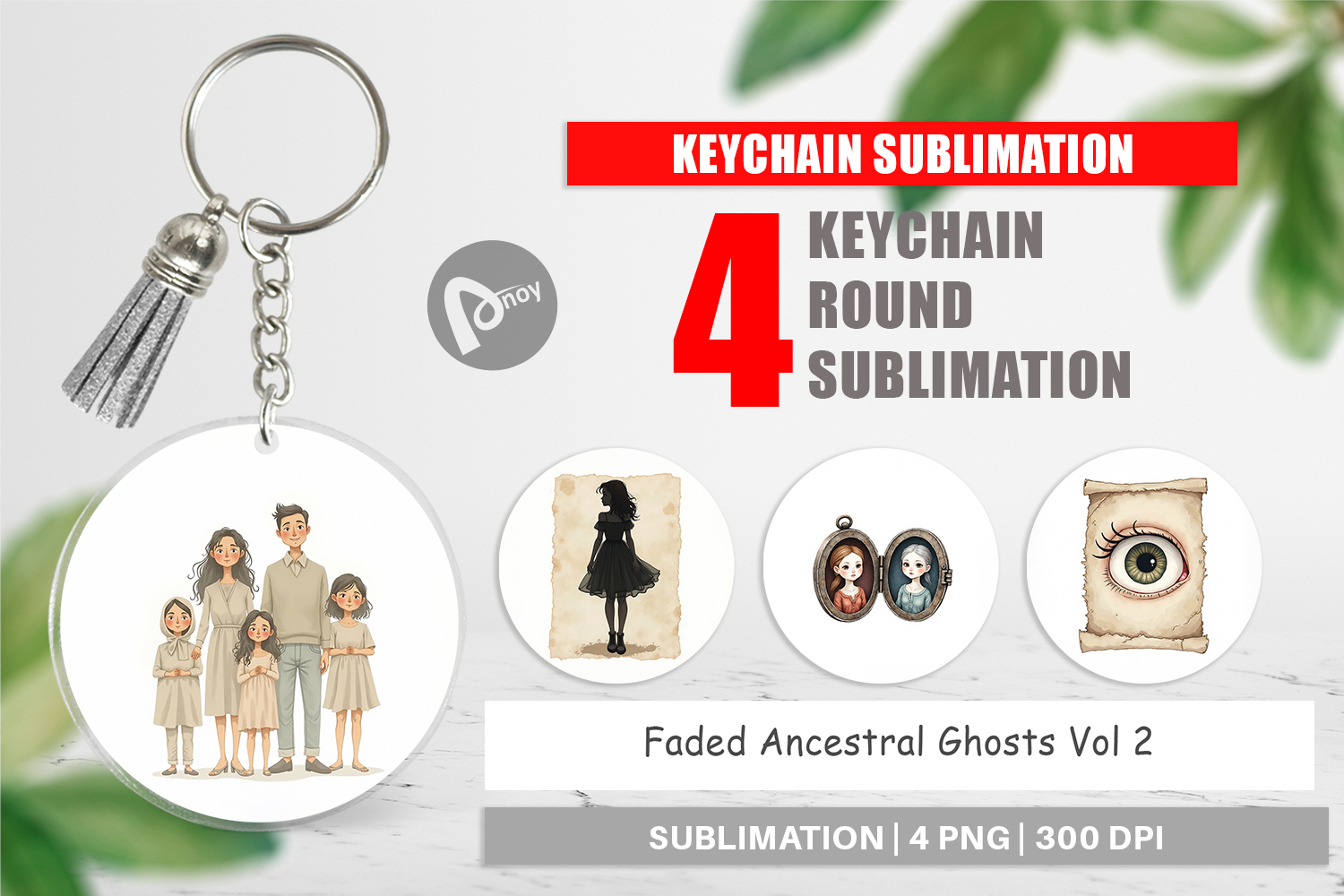 Sublimation Design Keychain Sublimation Round Keychain Png Spooky Ghost Background Gothic Keychain Png Bag Tag Design Printable Gift Png Faded Ghosts Keychain Vintage Halloween Gift Haunted Keychain