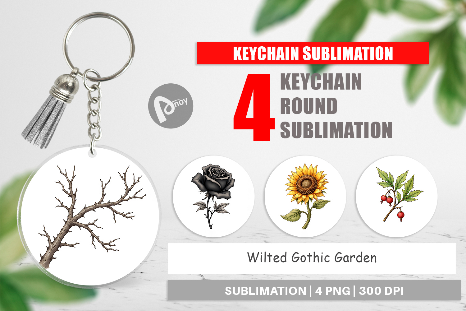 Sublimation Design Keychain Sublimation Round Keychain Png Gothic Keychain Png Gothic Floral Background Bag Tag Design Printable Gift Png Haunted Garden Gift Vintage Halloween Gift Wilted Garden Keychain