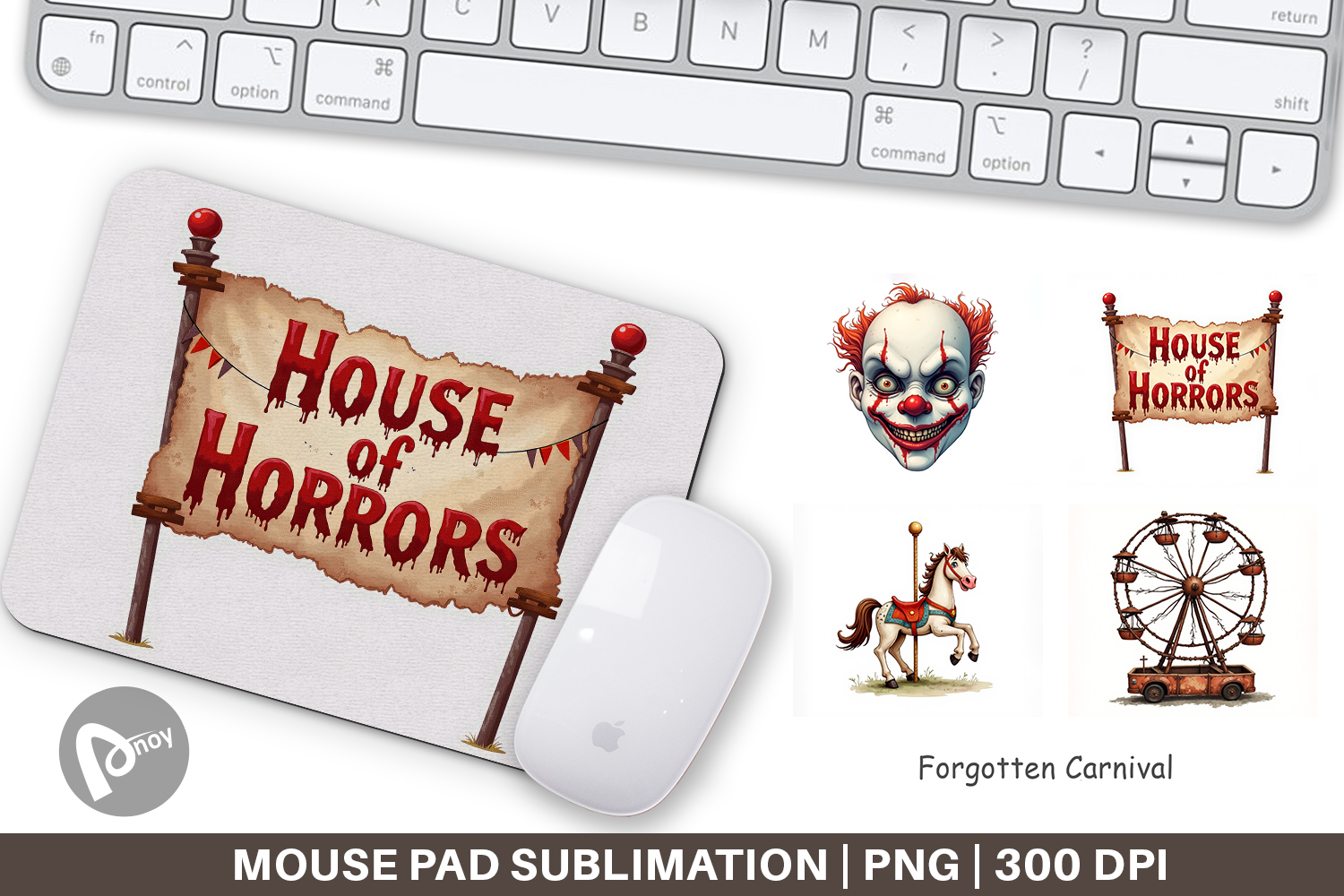 Computer Accessories Sublimation Design Vintage Halloween Decor Mouse Pad Sublimation Mouse Pad Png Desk Accessory Png Gothic Desk Accessory Creepy Carnival Gift Forgotten Carnival Mouse Pad Haunted Circus Desk Mat