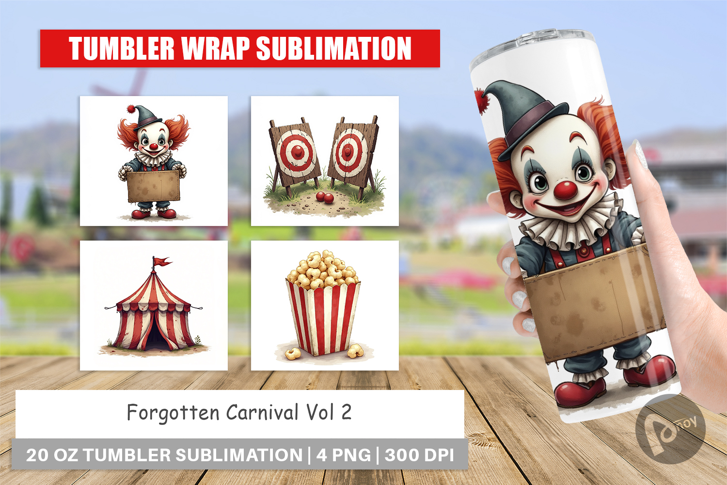 Sublimation Designs Skinny Tumbler Design Tumbler Sublimation Design Tumbler Wrap Png Full Tumbler Wrap Png Gothic Tumbler Wrap Creepy Carnival Gift Vintage Halloween Gift Forgotten Carnival Tumbler Haunted Circus Drinkware