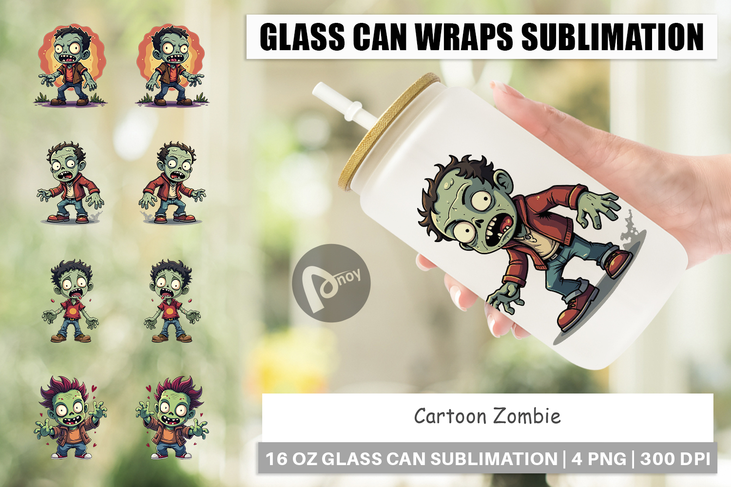 Sublimation Designs Full Wrap Design Halloween Party Cup Libbey Glass Sublimation Glass Can Wrap Png Printable Drinkware Spooky Season Drinkware Funny Horror Gift Cute Zombie Iced Coffee Cup Cartoon Zombie Glass Can Wrap