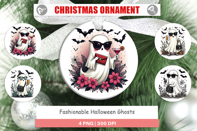 Sublimation Designs Diy Gift Idea Ornament Design Png Round Ornament Sublimation Halloween Tree Decor Spooky Season Gift Printable Holiday Ornament Girly Goth Gift Fashionable Ghosts Ornament Stylish Ghost Decor