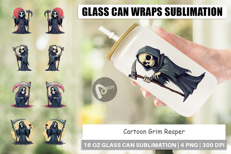 Cartoon Grim Reaper Glass Can example image 1