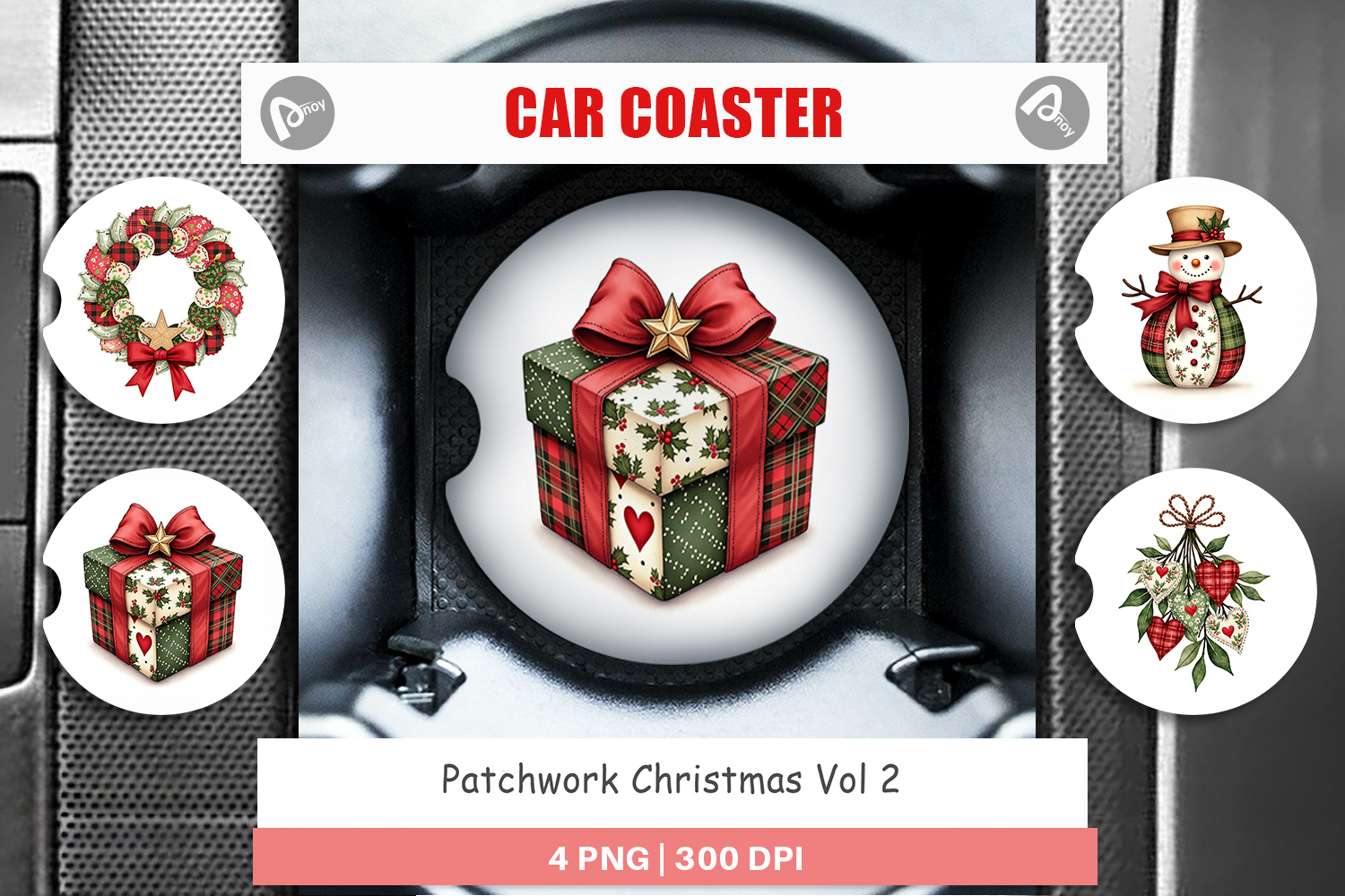 Sublimation Designs Car Coaster Png Car Coaster Sublimation Round Sublimation Template Cup Holder Coaster Png Holiday Car Accessory Winter Car Decor Country Christmas Gift Patchwork Christmas Coaster Quilt Style Car Decor