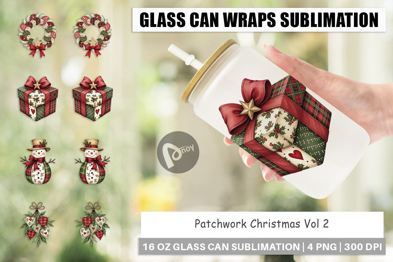 Sublimation Designs Full Wrap Design Christmas Drinkware Libbey Glass Sublimation Glass Can Wrap Png Printable Drinkware Holiday Party Cup Country Christmas Gift Patchwork Christmas Glass Can Quilt Style Iced Coffee Cup