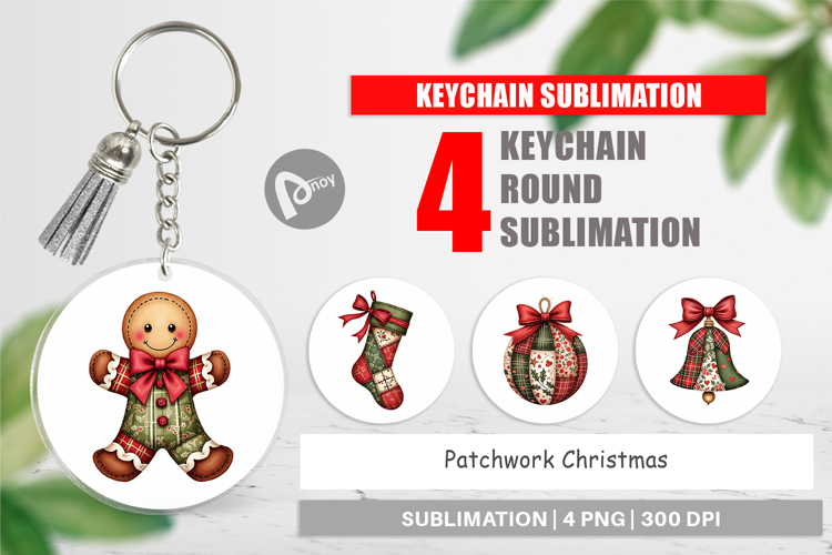 Sublimation Design Keychain Sublimation Holiday Gift Png Christmas Keychain Round Keychain Png Bag Tag Design Printable Gift Png Country Christmas Gift Quilt Style Background Patchwork Christmas Keychain