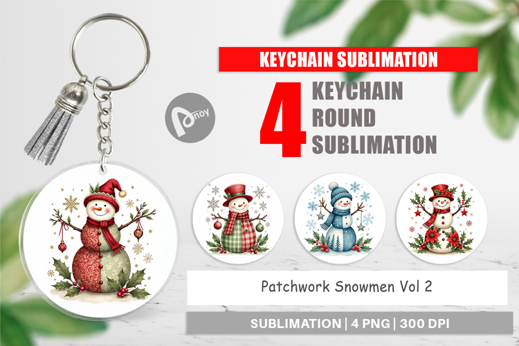Sublimation Design Keychain Sublimation Holiday Gift Png Christmas Keychain Round Keychain Png Bag Tag Design Printable Gift Png Country Christmas Gift Quilt Snowman Background Patchwork Snowmen Keychain
