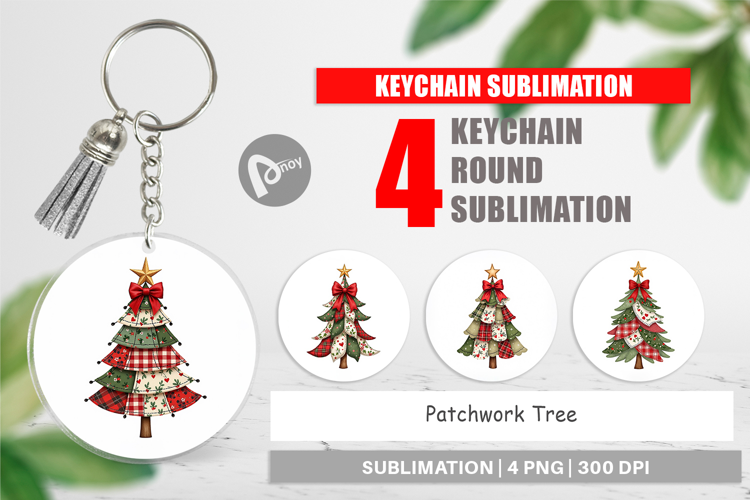 Sublimation Design Keychain Sublimation Holiday Gift Png Christmas Keychain Round Keychain Png Bag Tag Design Printable Gift Png Country Christmas Gift Quilt Tree Background Patchwork Tree Keychain