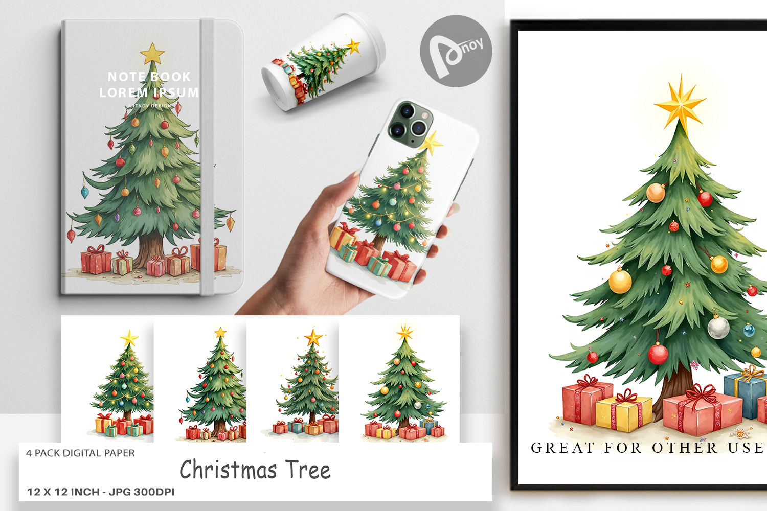 Printable Scrapbook Paper Digital Paper Bundle Christmas Tree Paper Winter Background Festive Background Christmas Scrapbook Page Holiday Junk Journal Digital Craft Supplies Sublimation Paper Background Holiday Tree Background