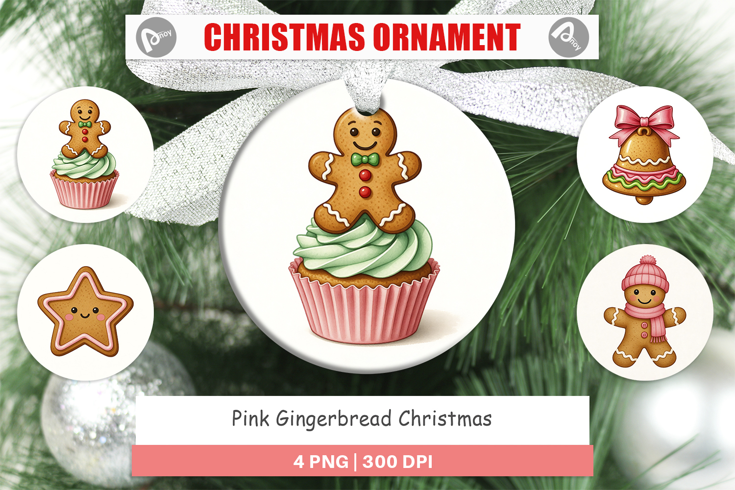 Christmas Ornament Sublimation Designs Diy Gift Idea Ornament Design Png Round Ornament Sublimation Holiday Keepsake Gift Printable Holiday Ornament Coquette Christmas Gift Pink Gingerbread Ornament Girly Christmas Decor