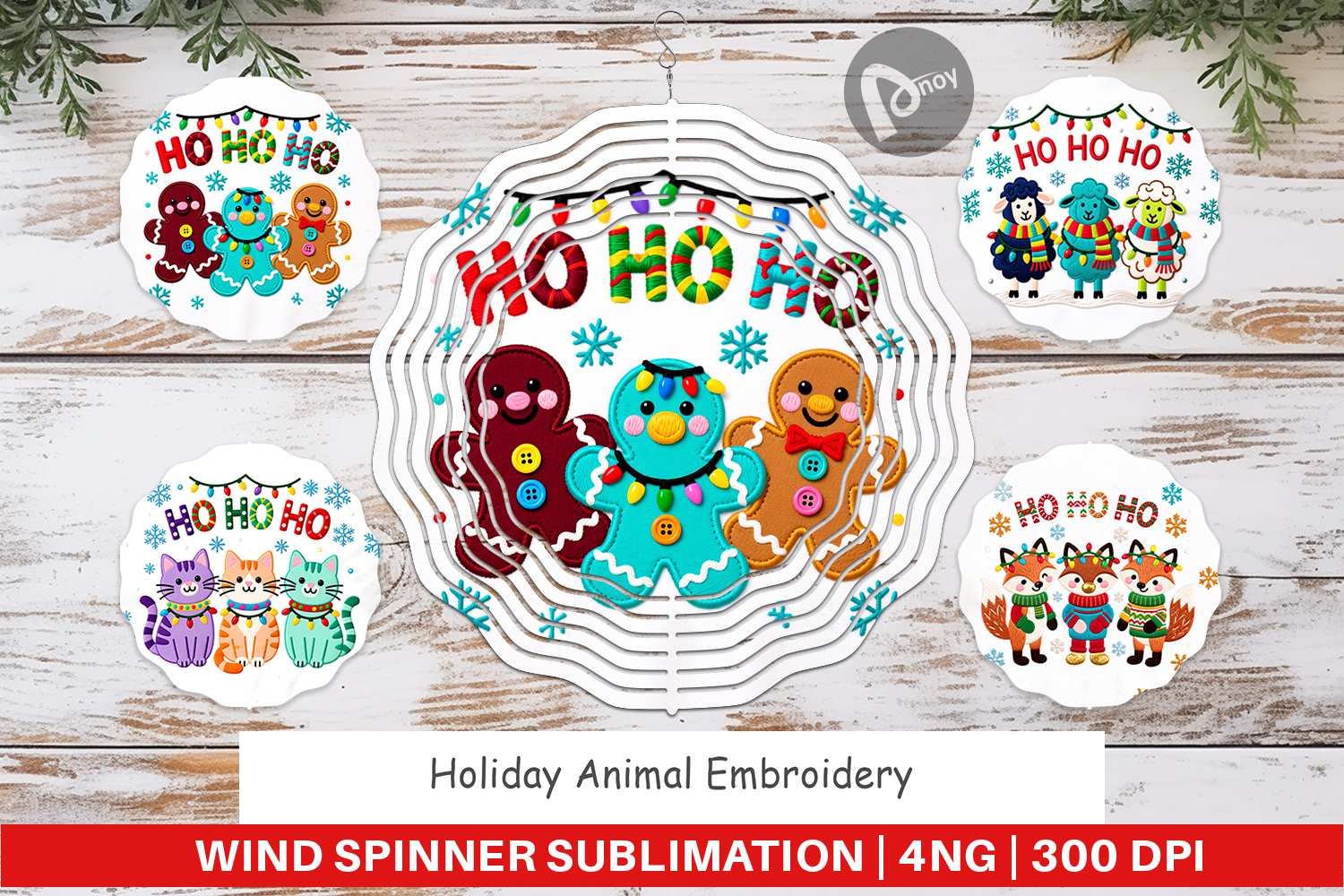 Christmas Gift Sublimation Designs Wind Spinner Sublimation Sublimation Spinner Design Outdoor Hanging Decor Printable Garden Gift Holiday Garden Decor Holiday Animal Wind Spinner Embroidery Style Garden Decor Folk Art Garden Gift