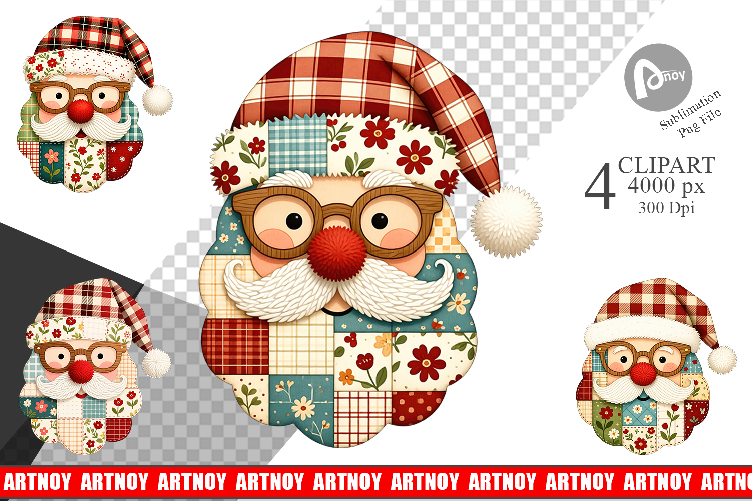 Holiday Clipart Scrapbook Elements Digital Clipart Printable Stickers Sublimation Designs Winter Clipart Bundle Christmas Junk Journal Clipart Bundle Png Patchwork Santa Clipart Quilt Santa Png