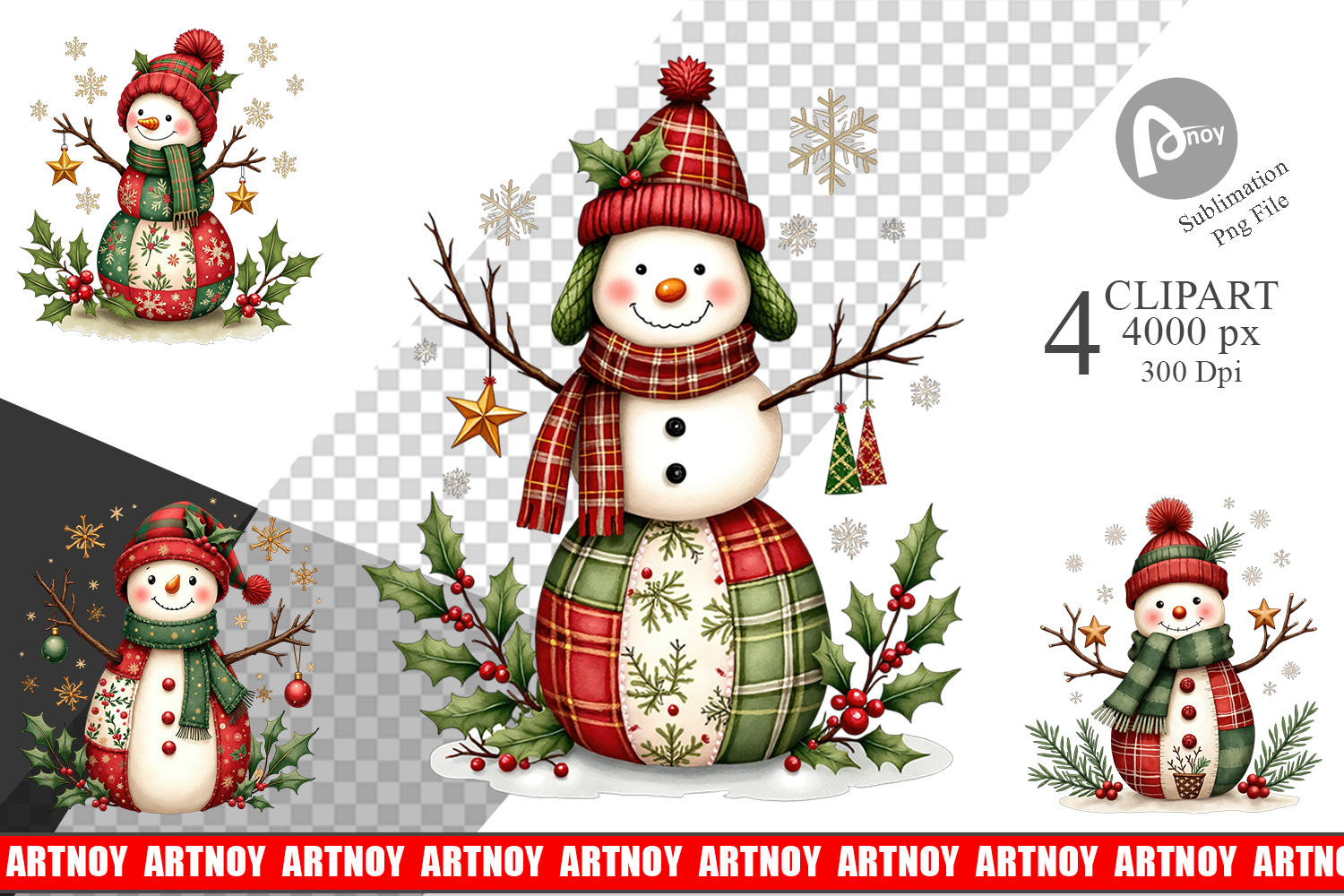 Holiday Clipart Scrapbook Elements Digital Clipart Printable Stickers Sublimation Designs Winter Clipart Bundle Christmas Junk Journal Clipart Bundle Png Patchwork Snowmen Clipart Quilt Snowman Png