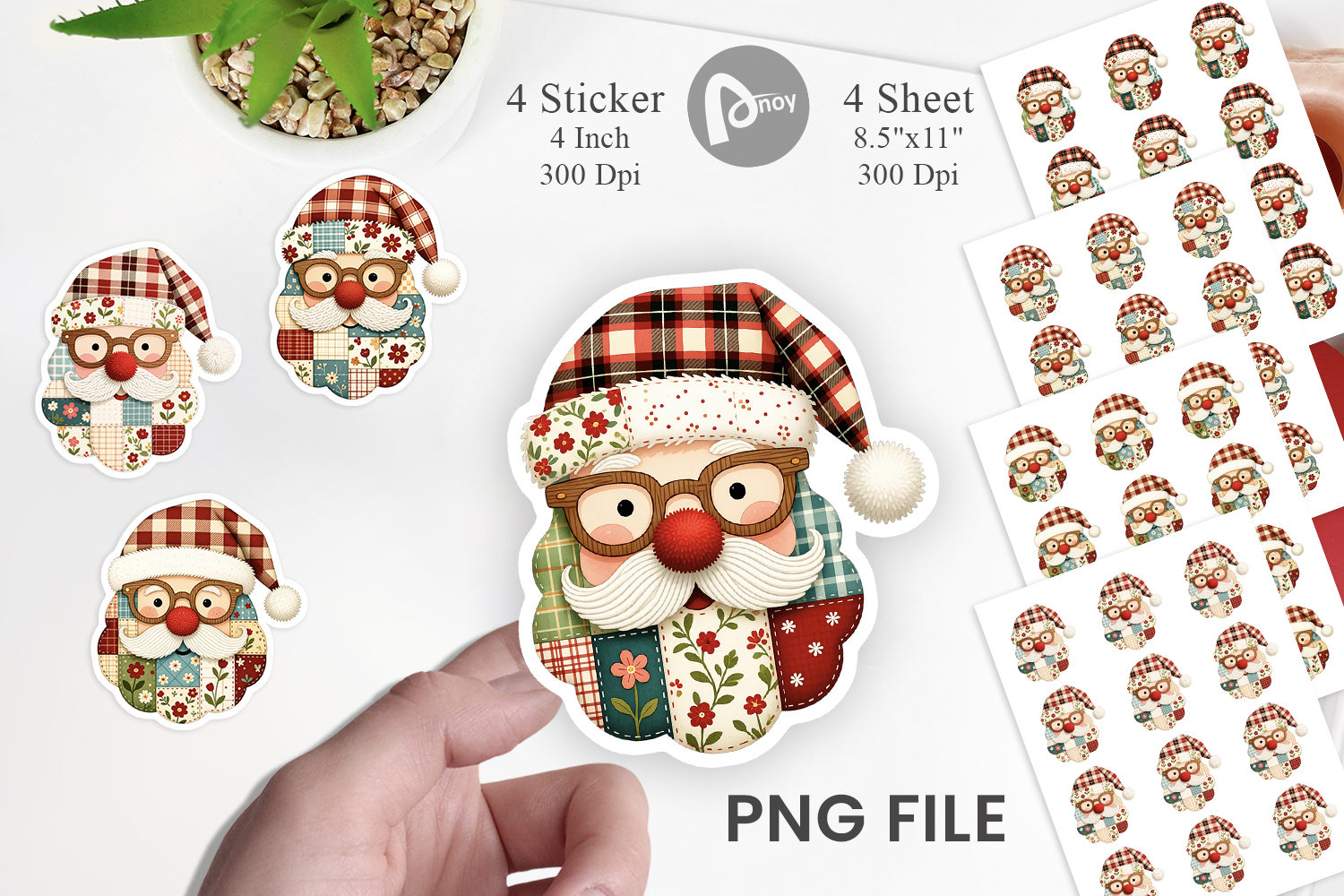 Planner Stickers Journal Stickers Holiday Sticker Digital Download Png Printable Sticker Sheet Christmas Sticker Pack Sticker Sheet Png Winter Sticker Sheet Patchwork Santa Sticker Png Quilt Santa Decal
