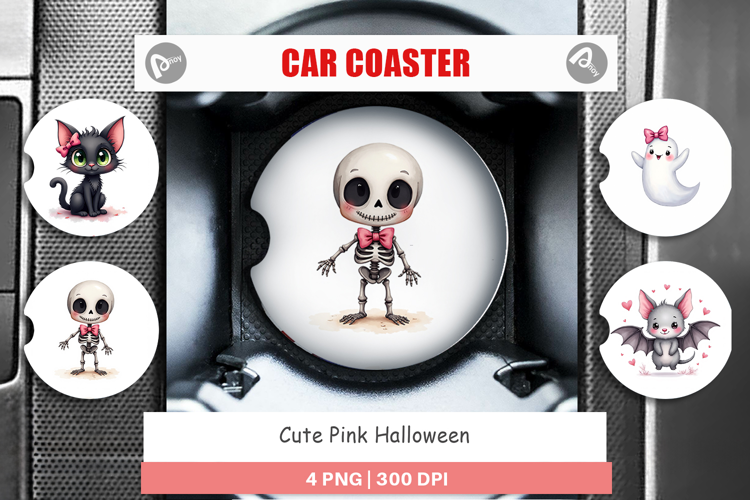 Cute Pink Halloween Car Coaster example image 1