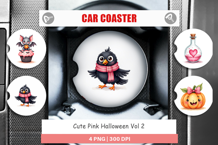 Cute Pink Halloween Car Coaster example image 1