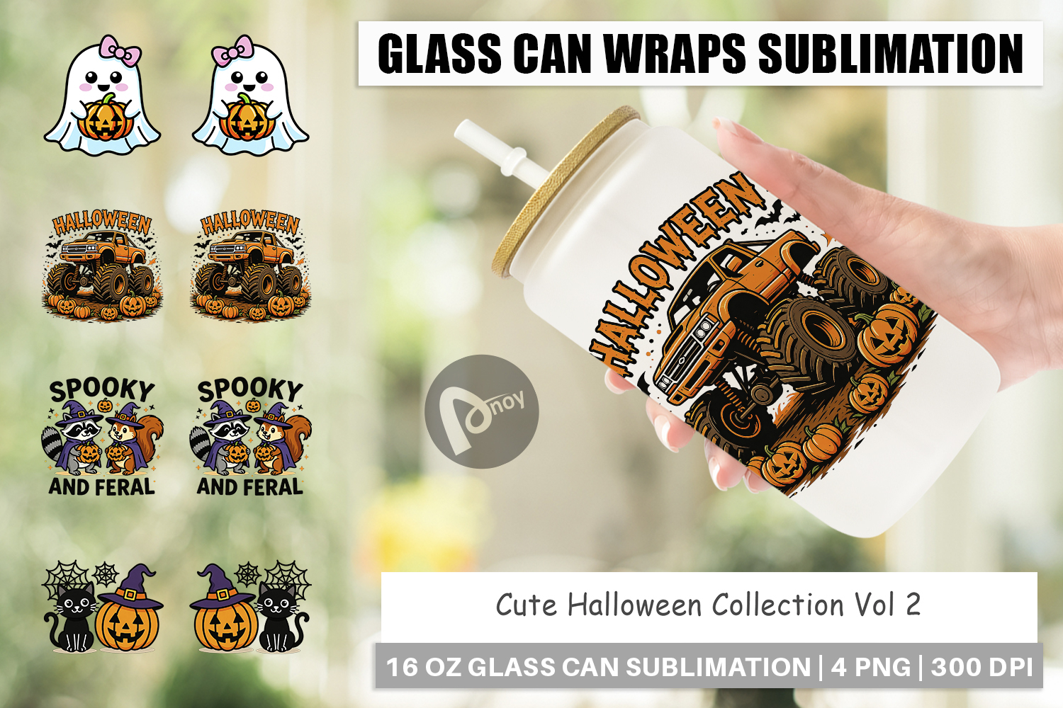 Sublimation Designs Full Wrap Design Halloween Party Cup Libbey Glass Sublimation Glass Can Wrap Png Cute Halloween Glass Can Wrap Kids Halloween Gift Printable Drinkware Spooky Season Drinkware Kawaii Spooky Iced Coffee Cup
