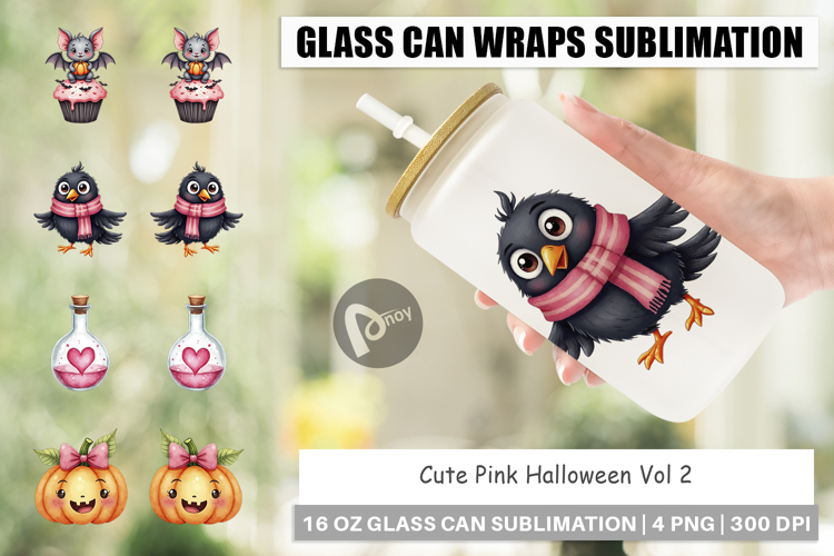 Cute Pink Halloween Glass Can example image 1