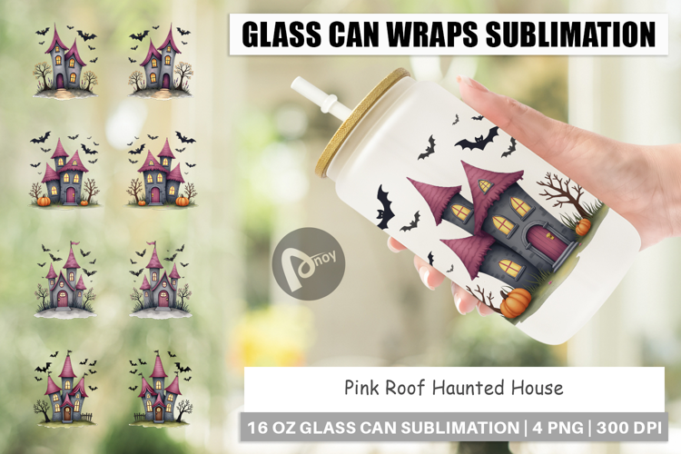 Pink Haunted House Glass Can example image 1