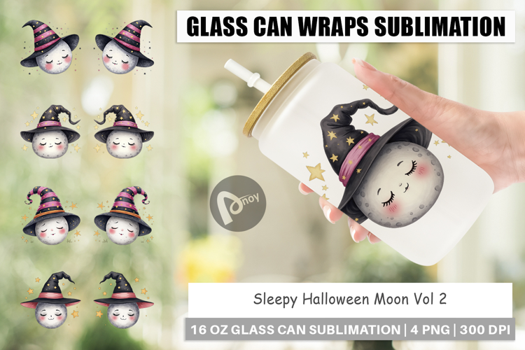 Sublimation Designs Full Wrap Design Halloween Party Cup Libbey Glass Sublimation Glass Can Wrap Png Printable Drinkware Spooky Season Drinkware Celestial Goth Gift Sleepy Halloween Moon Glass Can Crescent Moon Iced Coffee Cup
