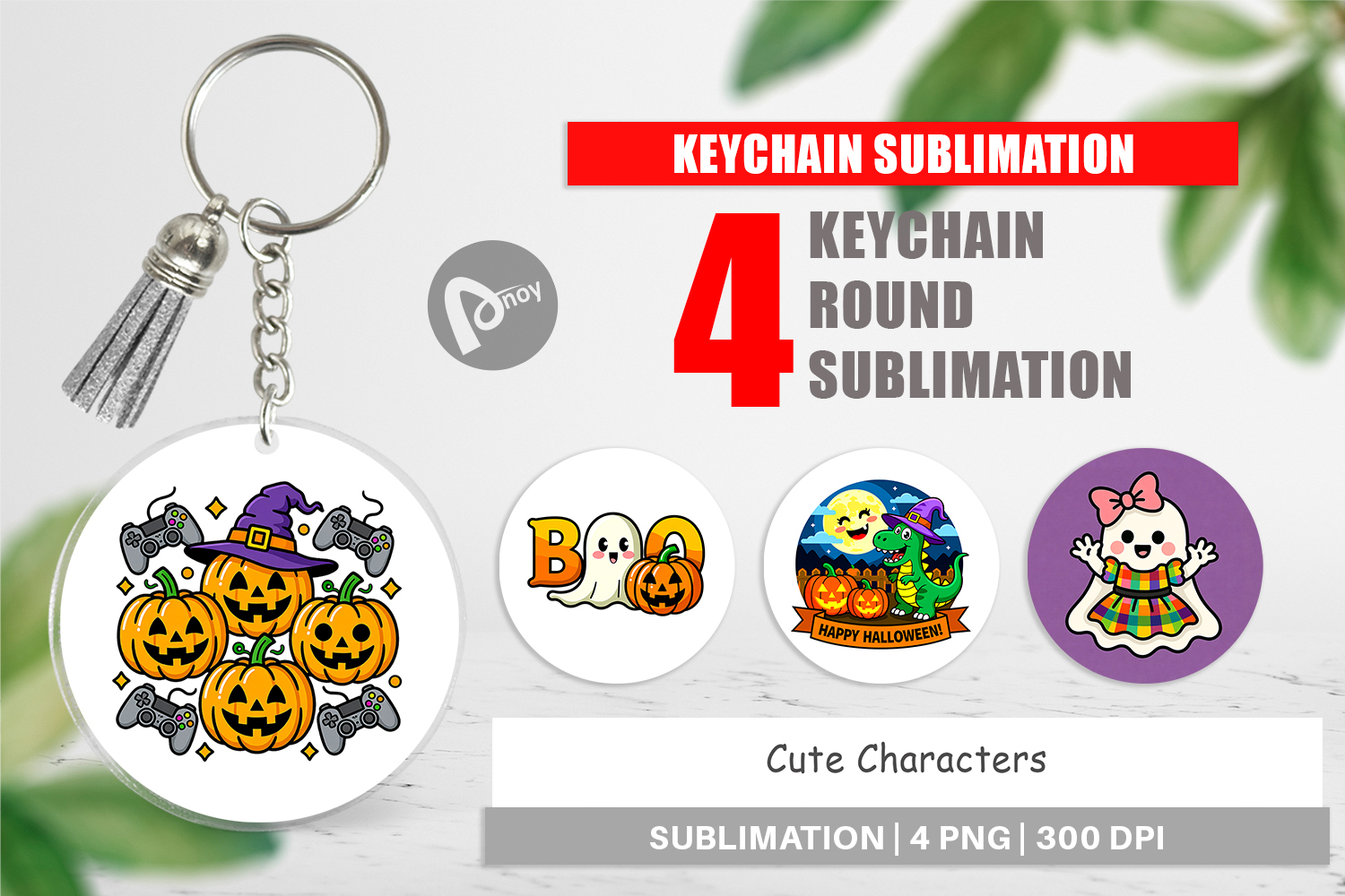 Sublimation Design Keychain Sublimation Round Keychain Png Kids Halloween Background Spooky Season Gift Bag Tag Design Printable Gift Png Halloween Gift Png Kawaii Monster Gift Cute Characters Keychain