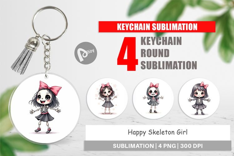 Sublimation Design Keychain Sublimation Round Keychain Png Spooky Season Gift Bag Tag Design Printable Gift Png Halloween Gift Png Dancing Skeleton Gift Girly Skeleton Background Happy Skeleton Girl Keychain