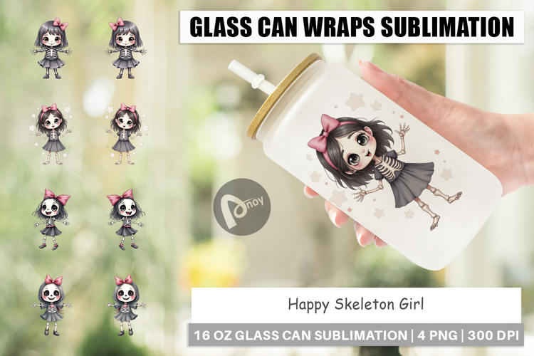 Sublimation Designs Full Wrap Design Halloween Party Cup Libbey Glass Sublimation Glass Can Wrap Png Printable Drinkware Spooky Season Drinkware Dancing Skeleton Gift Happy Skeleton Girl Glass Can Girly Skeleton Iced Coffee Cup