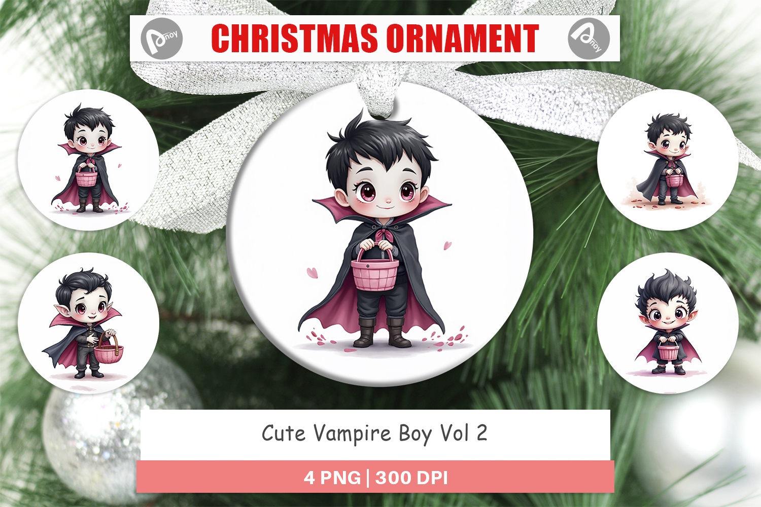 Sublimation Designs Diy Gift Idea Ornament Design Png Round Ornament Sublimation Halloween Tree Decor Spooky Season Gift Printable Holiday Ornament Vampire Gift Cute Vampire Boy Ornament Kawaii Dracula Decor
