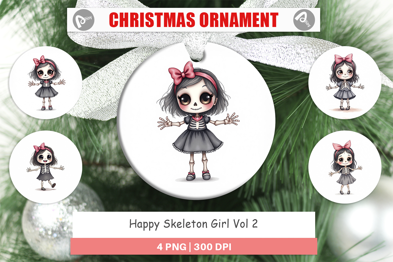 Sublimation Designs Diy Gift Idea Ornament Design Png Round Ornament Sublimation Halloween Tree Decor Spooky Season Gift Printable Holiday Ornament Dancing Skeleton Gift Happy Skeleton Girl Ornament Girly Skeleton Decor