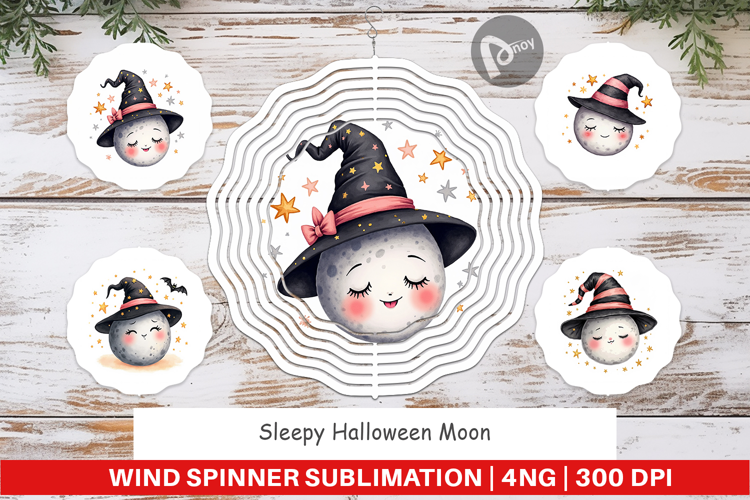 Sublimation Designs Wind Spinner Sublimation Sublimation Spinner Design Halloween Garden Decor Spooky Season Gift Outdoor Hanging Decor Printable Garden Gift Celestial Goth Gift Sleepy Halloween Moon Spinner Crescent Moon Garden Decor