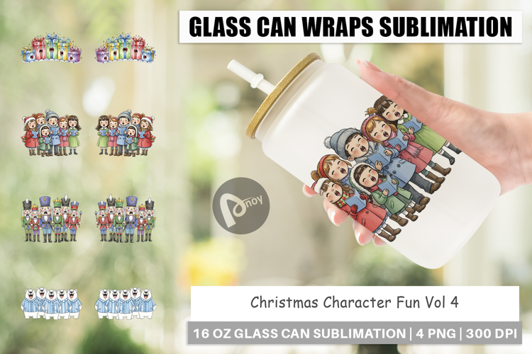 Diy Gift Idea Libbey Glass Sublimation Glass Can Wrap Png Printable Cup Wrap Fun Tumbler Wrap Christmas Character Fun Cute Holiday Cartoons Festive Cartoon Pals Childrens Christmas Gift Silly Holiday Characters