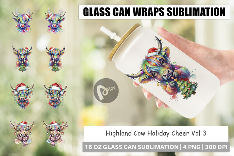 Diy Gift Idea Cow Tumbler Wrap Libbey Glass Sublimation Glass Can Wrap Png Printable Cup Wrap Festive Farm Animal Christmas Cow Art Highland Cow Holiday Rustic Country Christmas Scottish Coo Gift