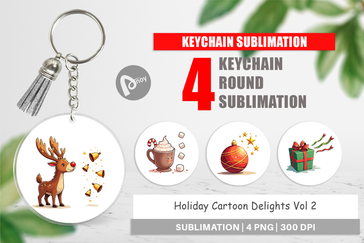 Holiday Cartoon Delights Keychain example image 1