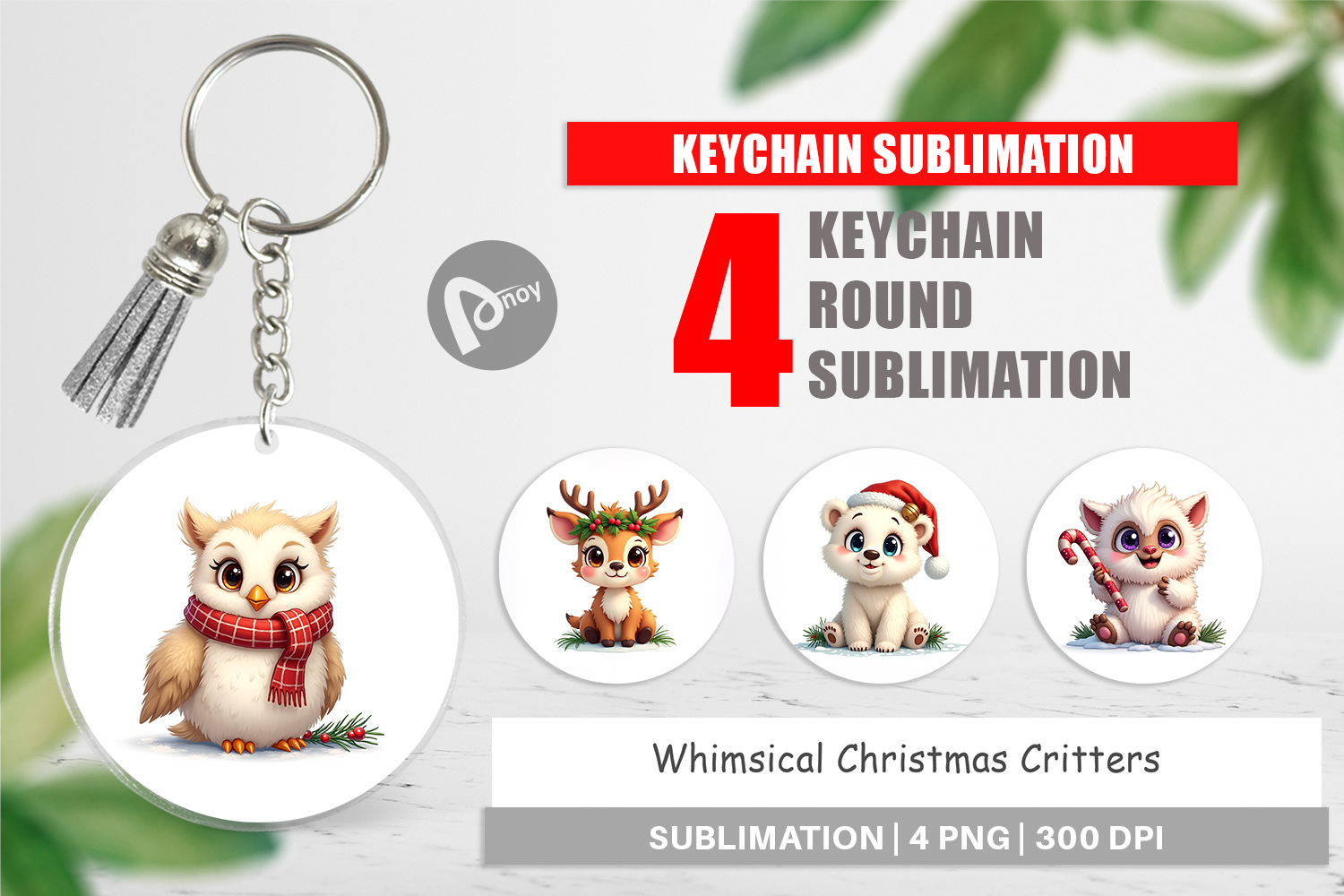 Sublimation Designs Keychain Sublimation Round Keychain Png Fantasy Creature Design Printable Gift Png Whimsical Christmas Critters Magical Holiday Animals Enchanted Christmas Art Storybook Christmas Gift Magical Bag Tag