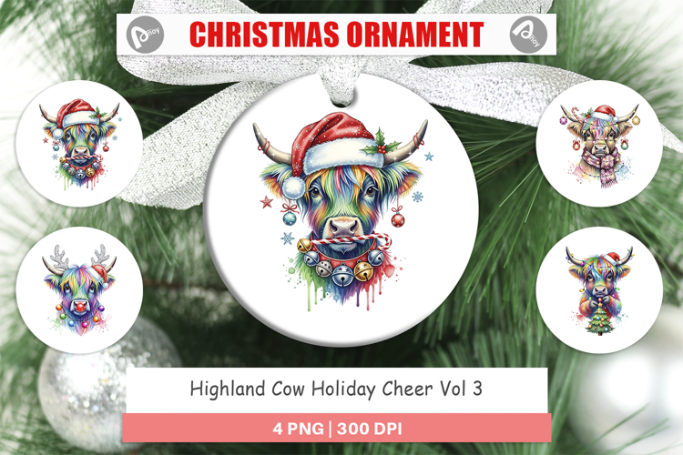 Sublimation Designs Ornament Design Png Printable Christmas Gift Round Ornament Sublimation Festive Farm Animal Christmas Cow Art Highland Cow Holiday Rustic Country Christmas Scottish Coo Gift Cow Tree Decor