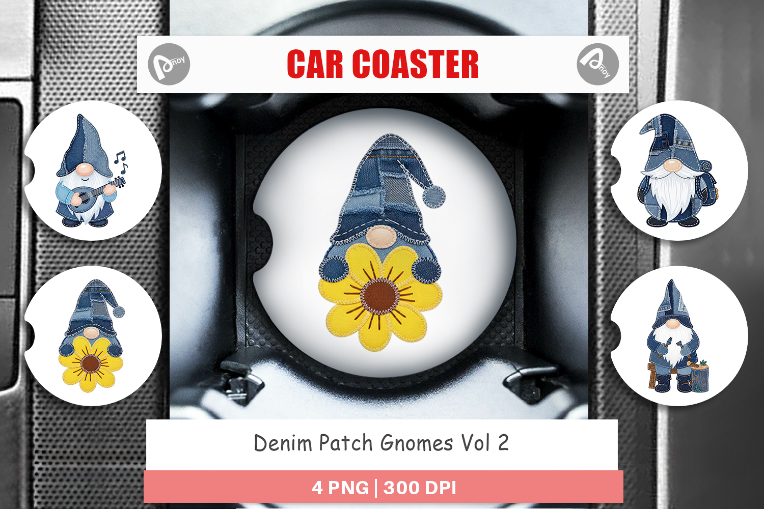 Sublimation Designs Diy Gift Idea Car Coaster Png Car Coaster Sublimation Holiday Gift Idea Christmas Gnome Décor Printable Car Gift Denim Patch Gnomes Gnome Car Accessory Denim Gnome Design