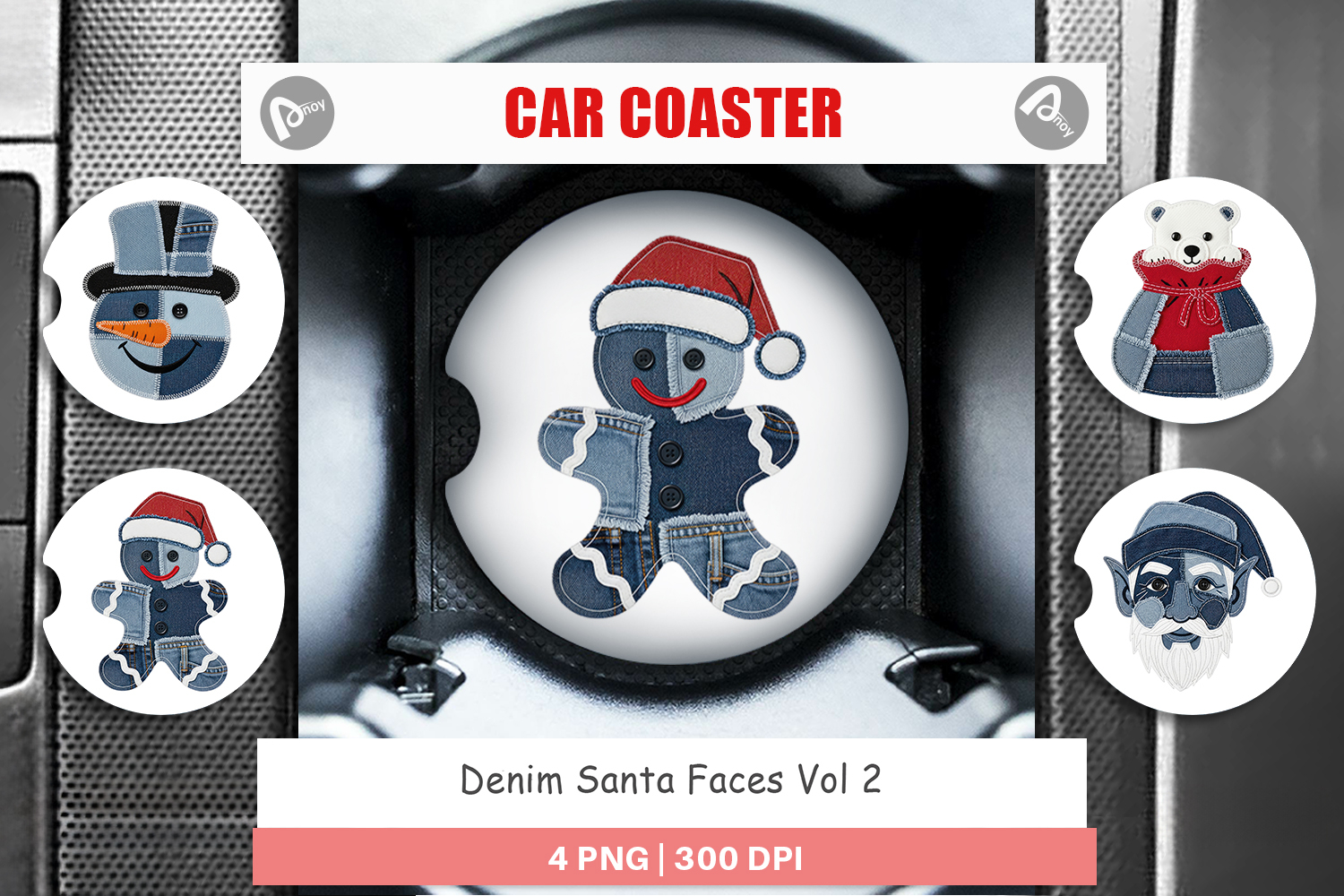 Sublimation Designs Diy Gift Idea Car Coaster Png Car Coaster Sublimation Holiday Car Accessory Printable Car Gift Denim Holiday Faces Christmas Character Art Winter Season Gift Cute Faces Design